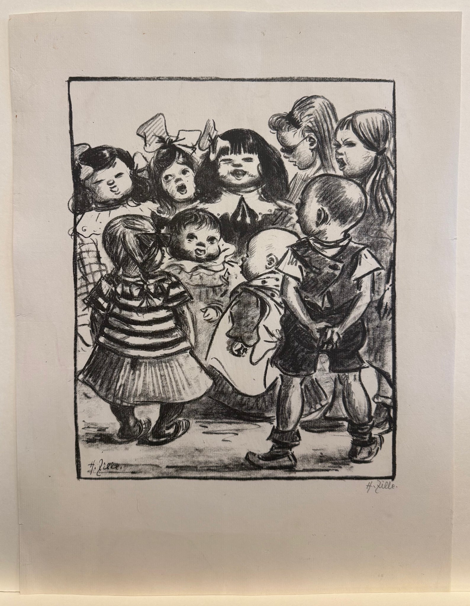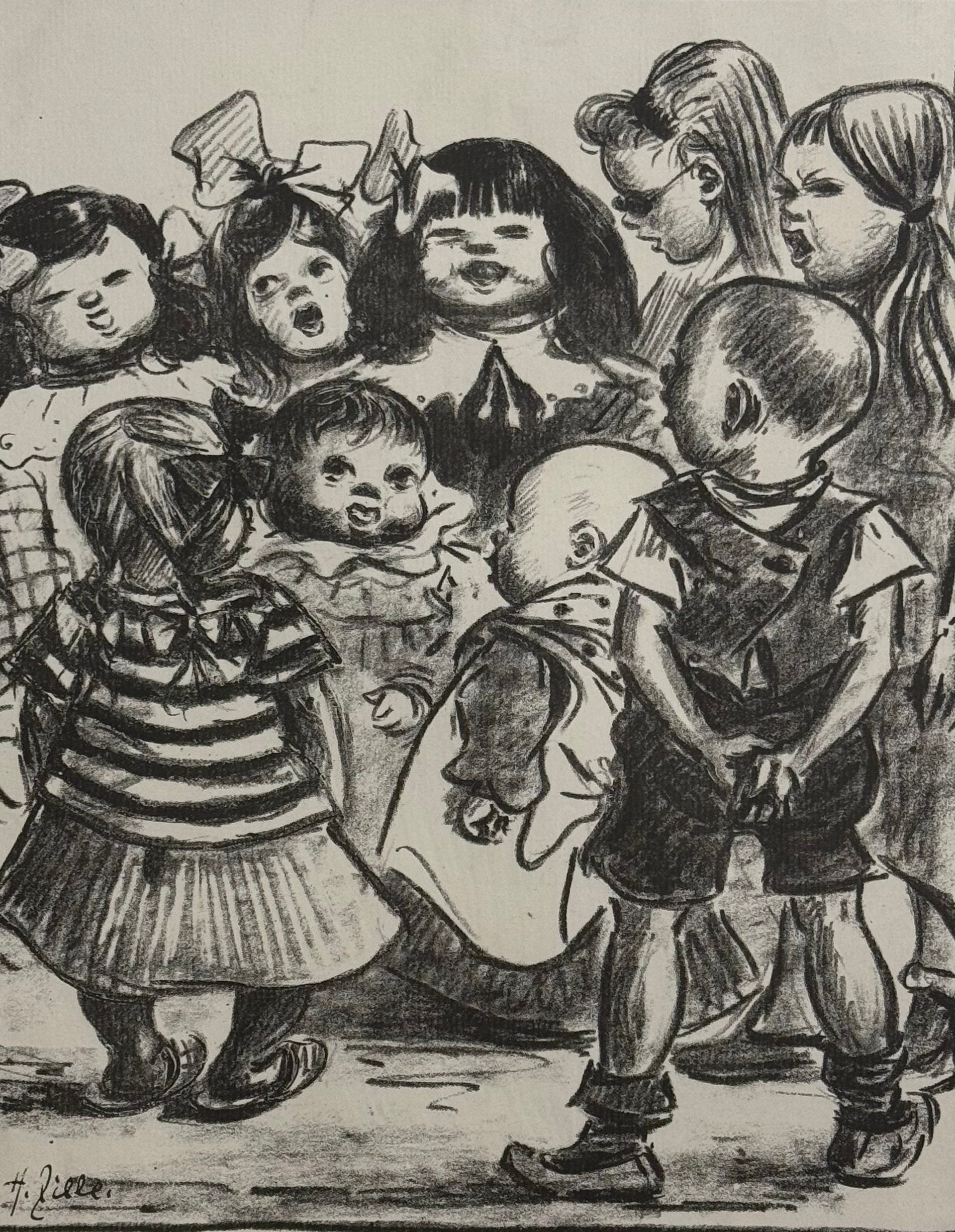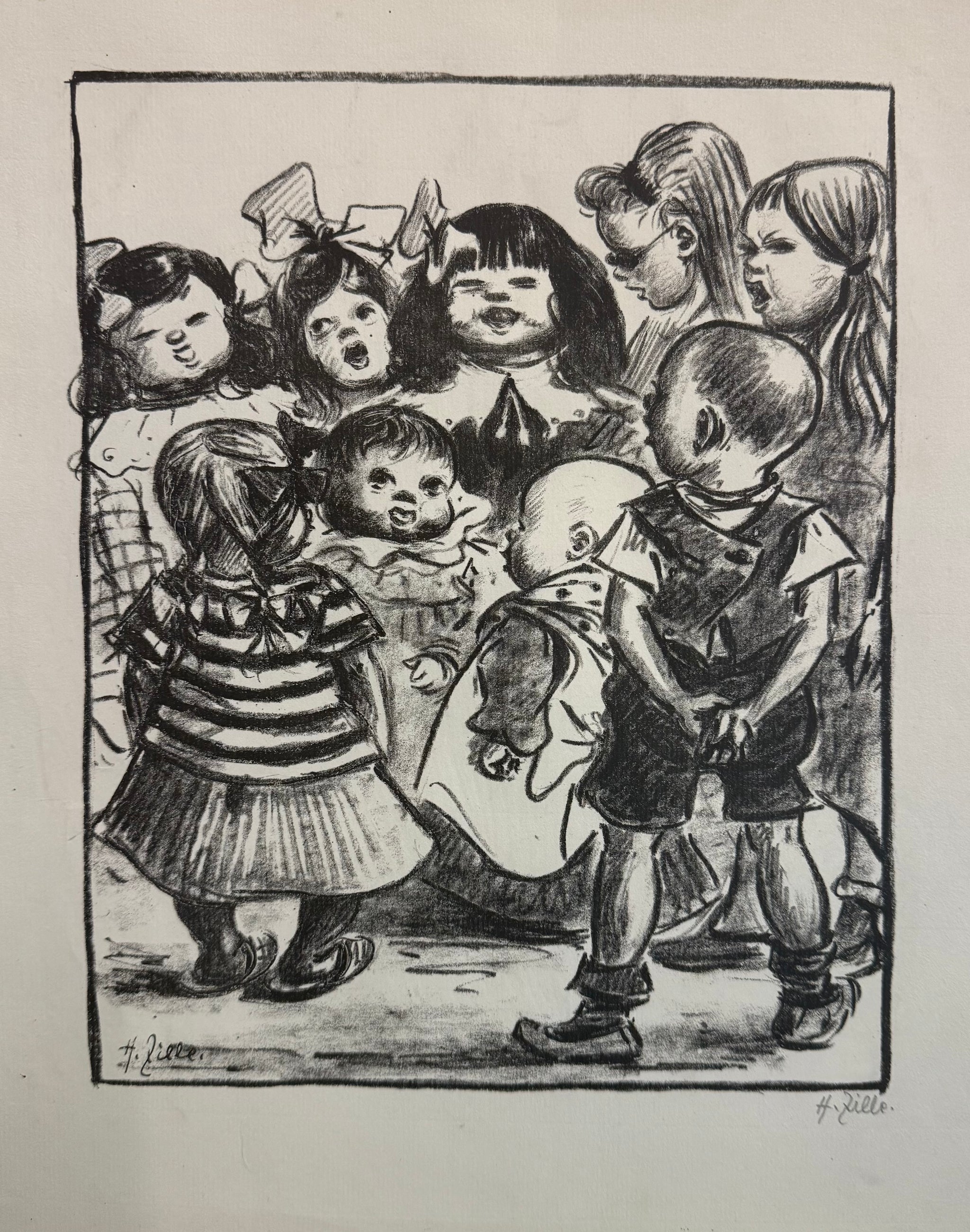 Heinrich Zille : Zwanglose Geschichten und Bilder - Singende Kinder - Original Lithografie - 1919