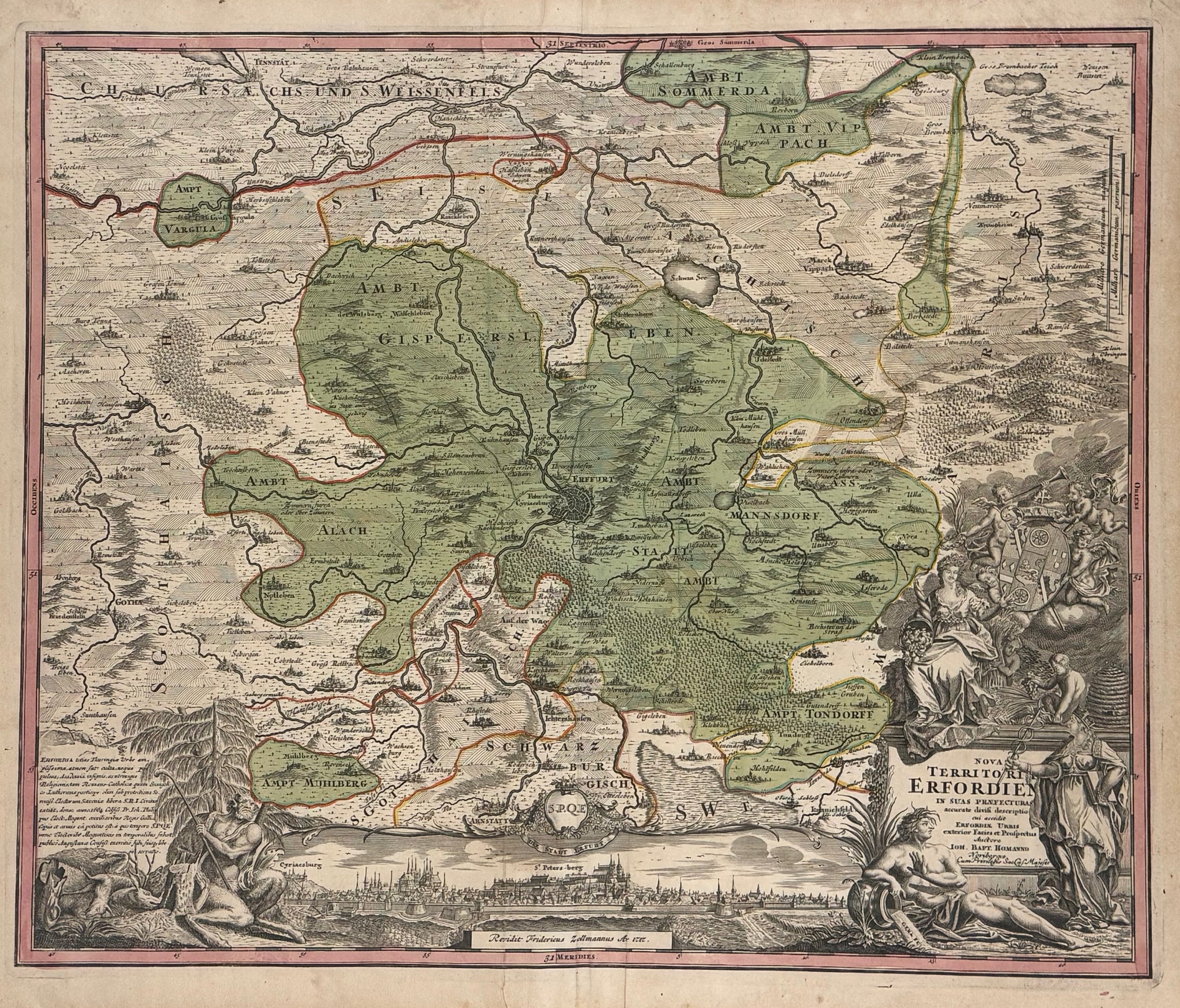 Erfurt & Umgebung : Johann Baptist Homann - Original Kupferstich - 1729