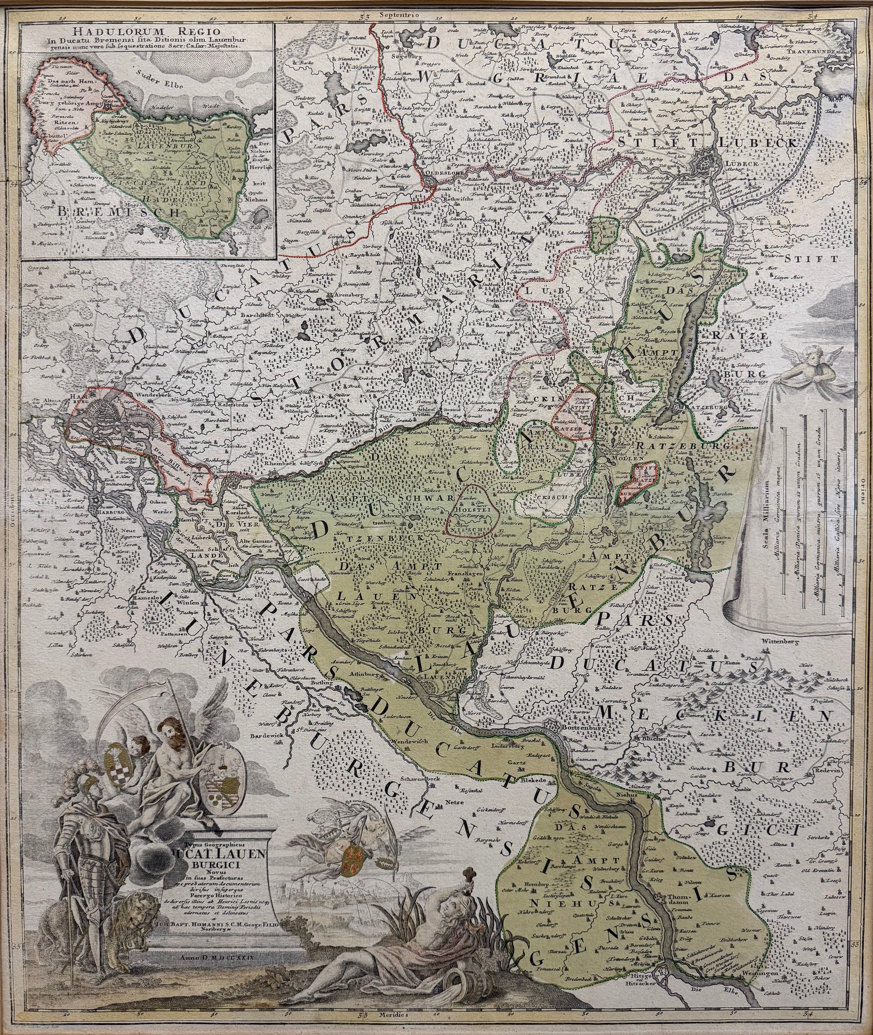 Lauenburg - Hamburg - Lübeck : Johann Christoph Homann / Ruprecht Adam Schneider - Original Kupferstich - 1729