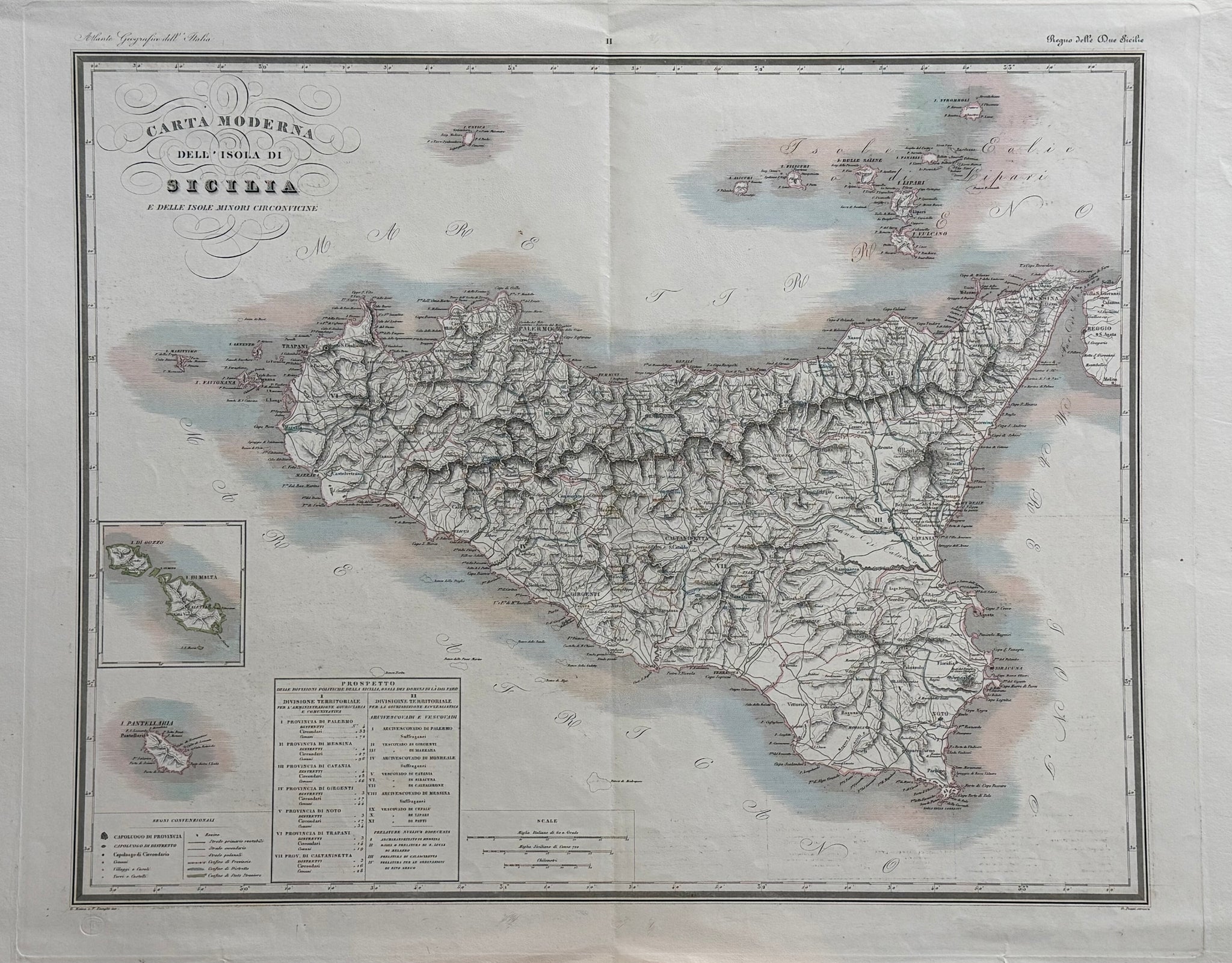 Sizilien - Italien : Giacinto Maina / Vincenzo Stanghi / G. Pozzi : Original Kupferstich - 1844