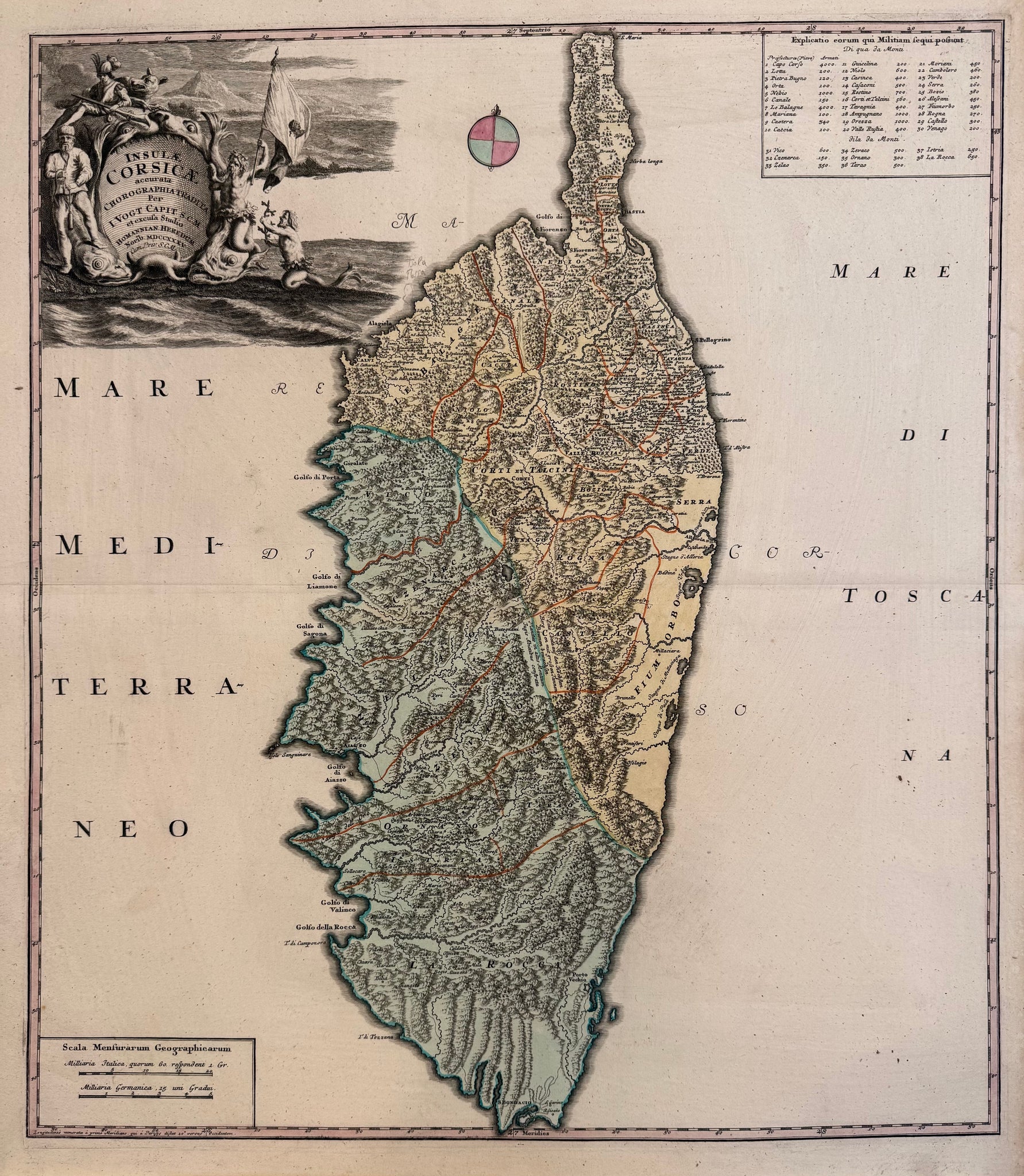 Korsika - Frankreich : Johann Baptist Homann Erben / Joan Vogt - Original Kupferstich - 1735
