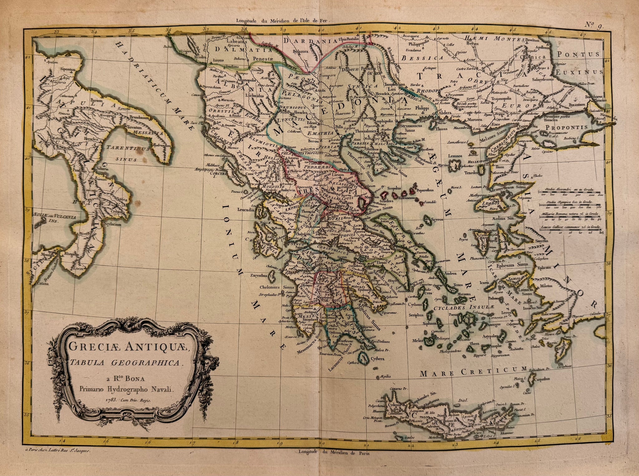 Griechenland : Peleponnes - Makedonien - Kreta : Rigobert Bonne - Original Kupferstich - 1783