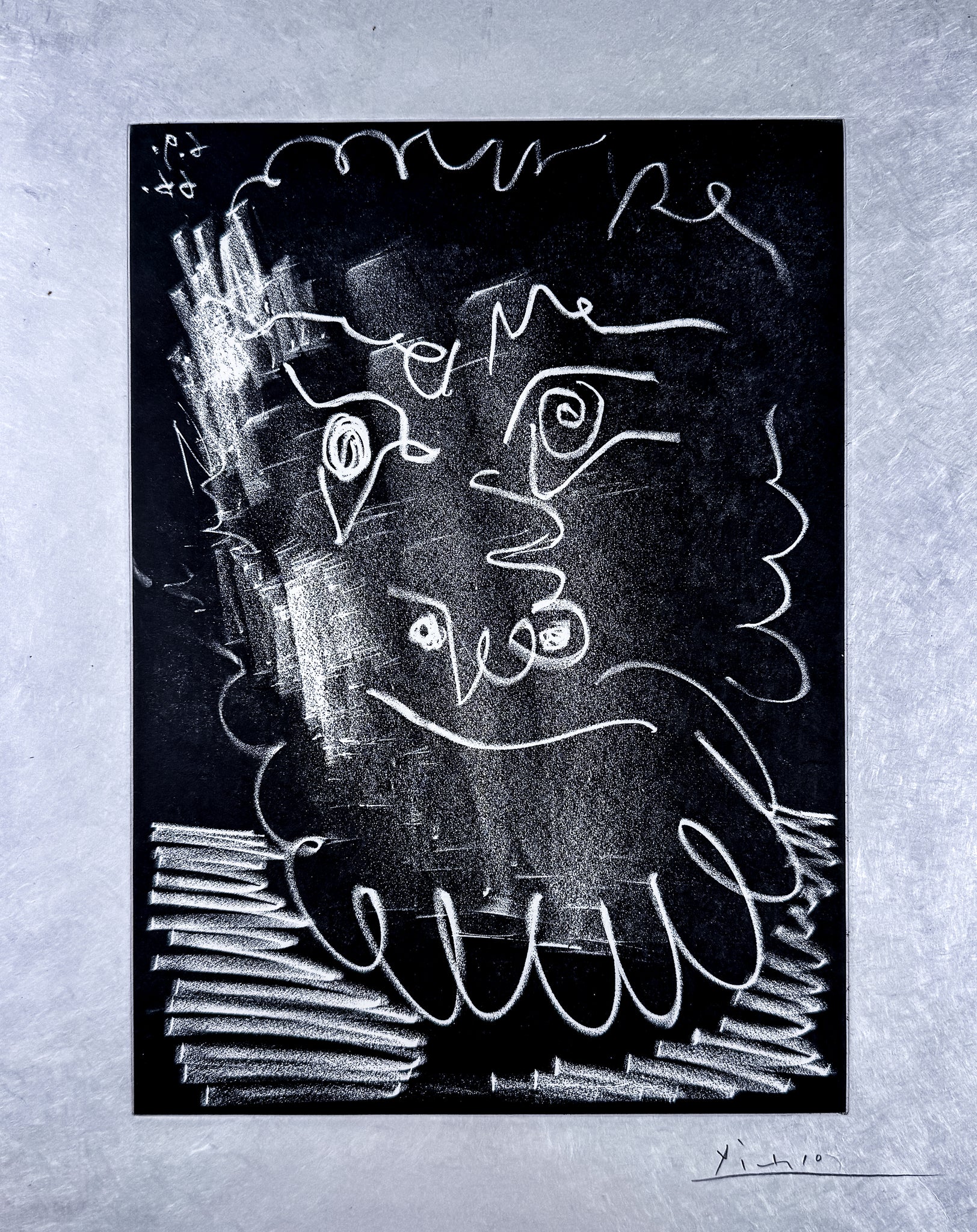 Ein eindringliches Blatt aus dem späten grafischen Werk von Pablo Ruiz Picasso, reduziert, direkt und von großer innerer Präsenz.