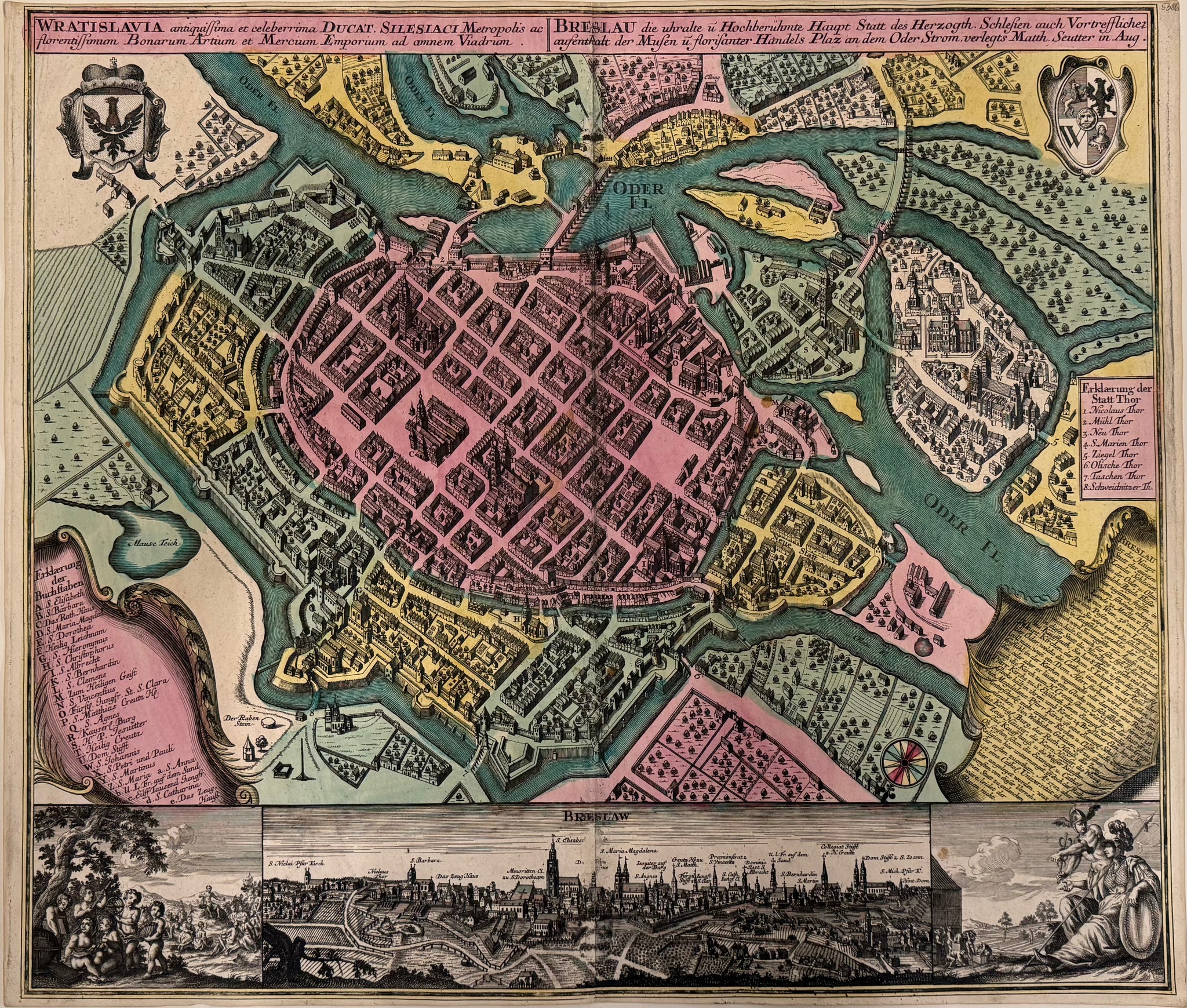 Breslau - Plan mit Gesamtansicht : Matthäus Seutter - Original Kupferstich - 1730