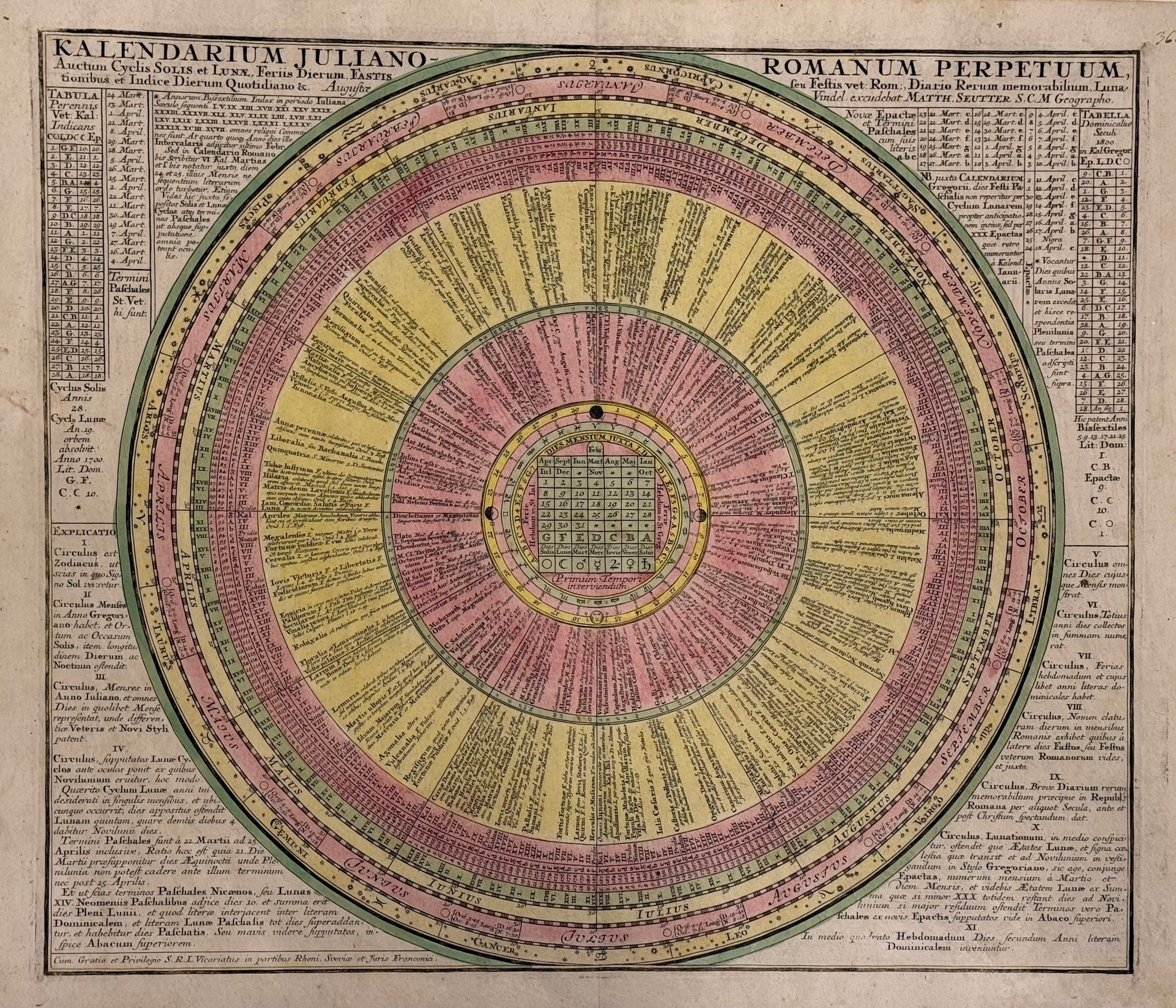 Julianischer Kalender : Matthäus Seutter - Original Kupferstich - 1740