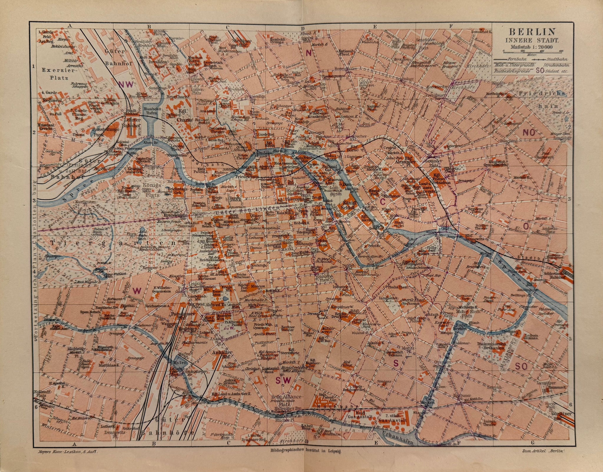 Berlin - Plan - Innenstadt : Herrmann Julius Meyer - Original Lithografie - 1908