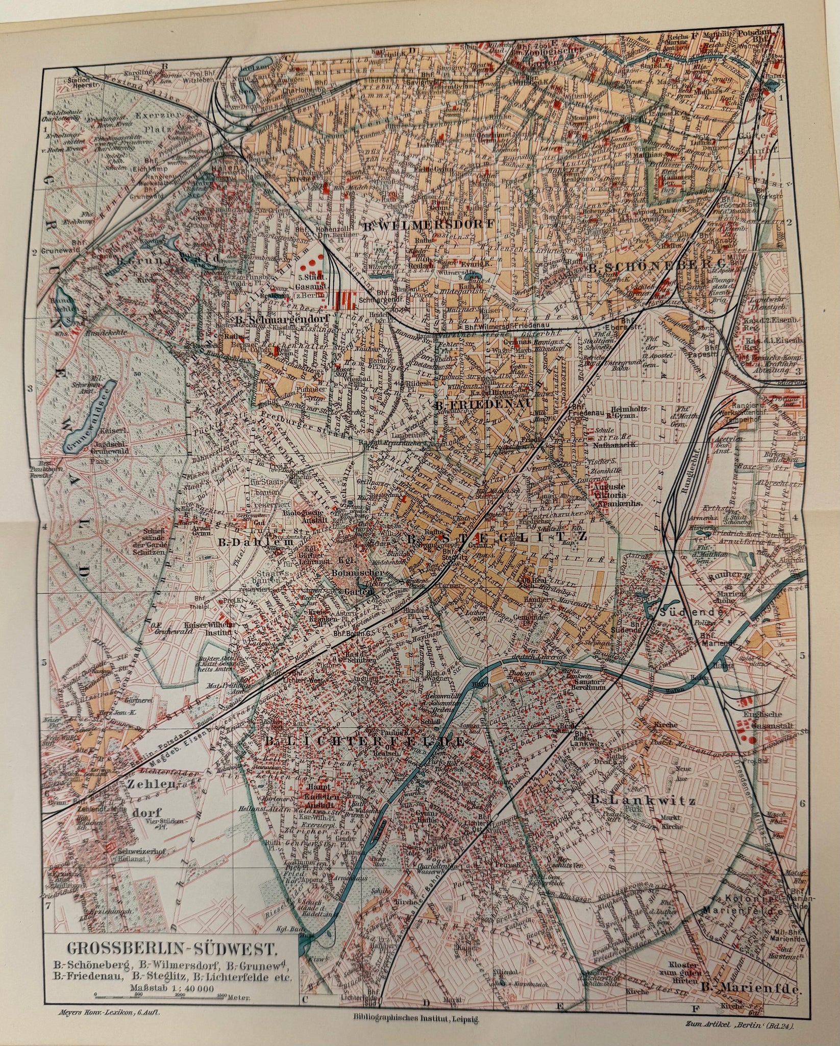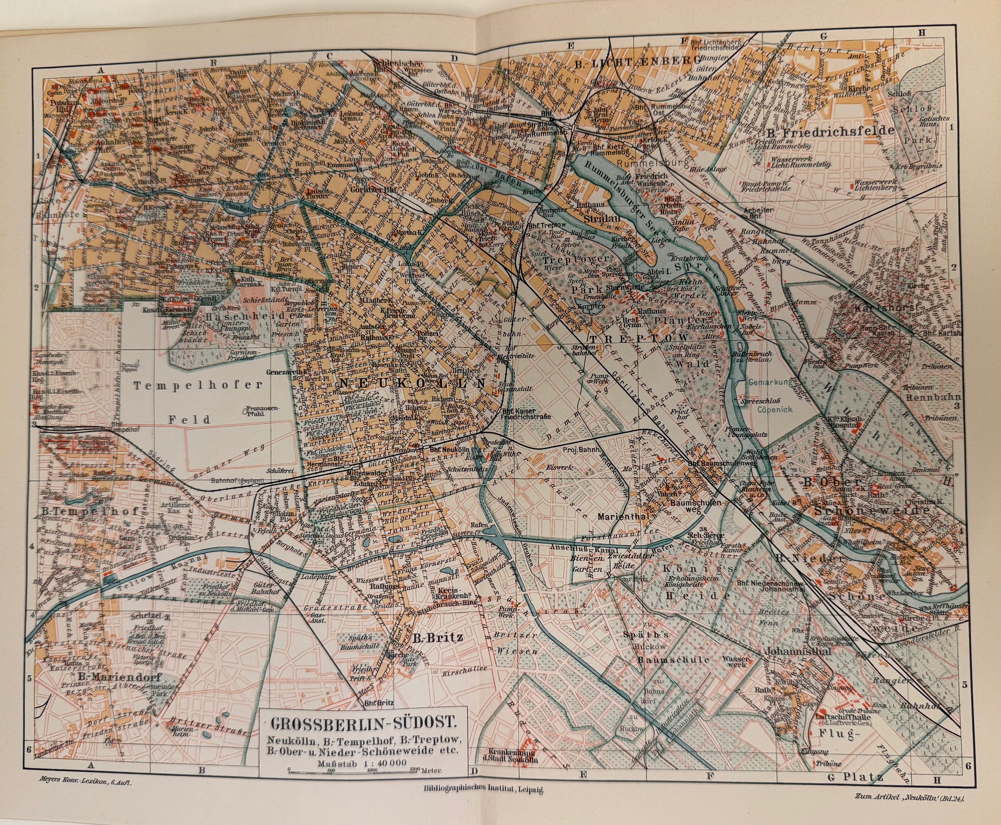 Berlin-Plan : Herrmann Julius Meyer - Original Lithografie - 1905