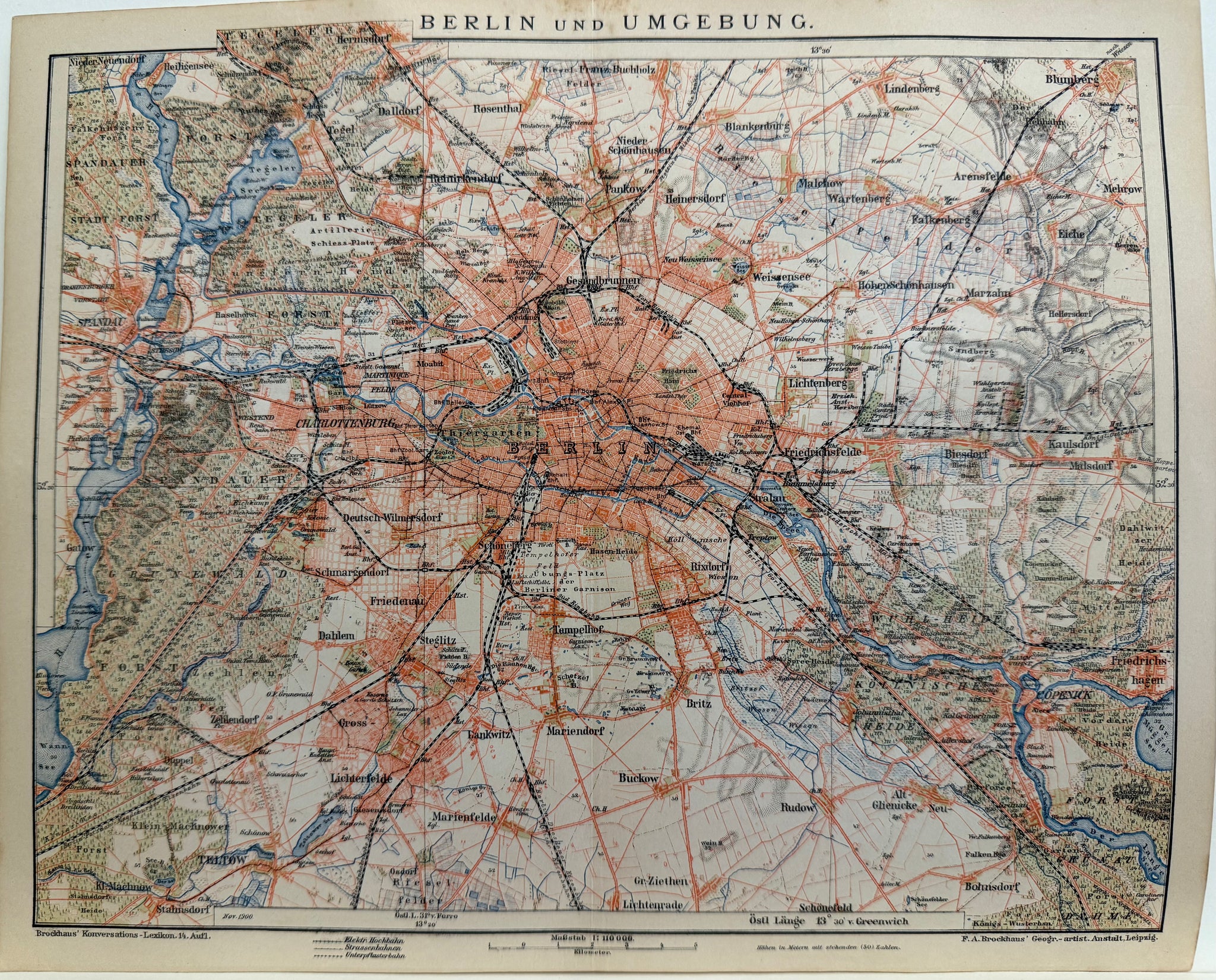 Berlin-Plan : Friedrich Arnold Brockhaus - Original Lithografie - 1895