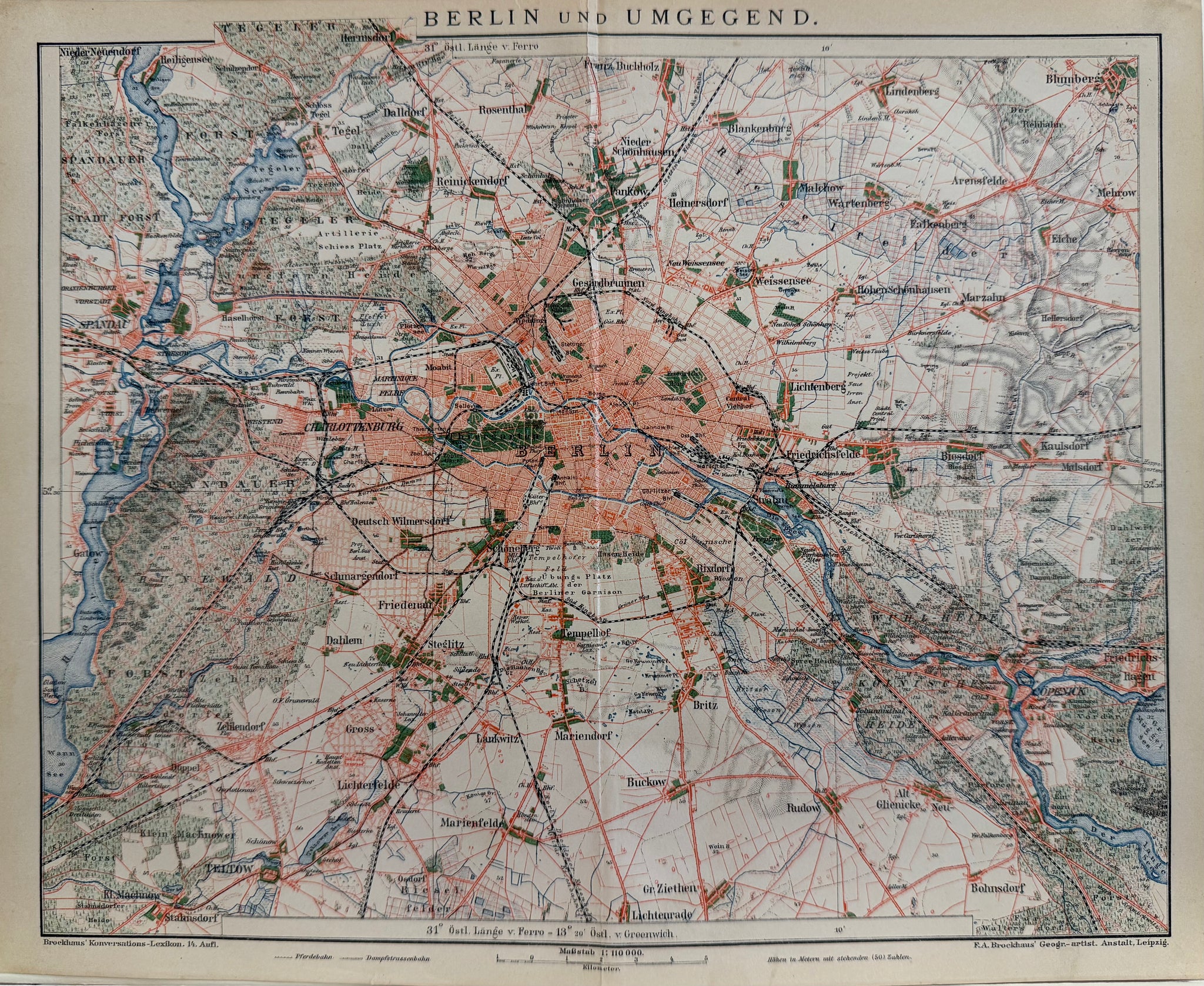 Berlin-Plan : Friedrich Arnold Brockhaus - Original Lithografie - 1893