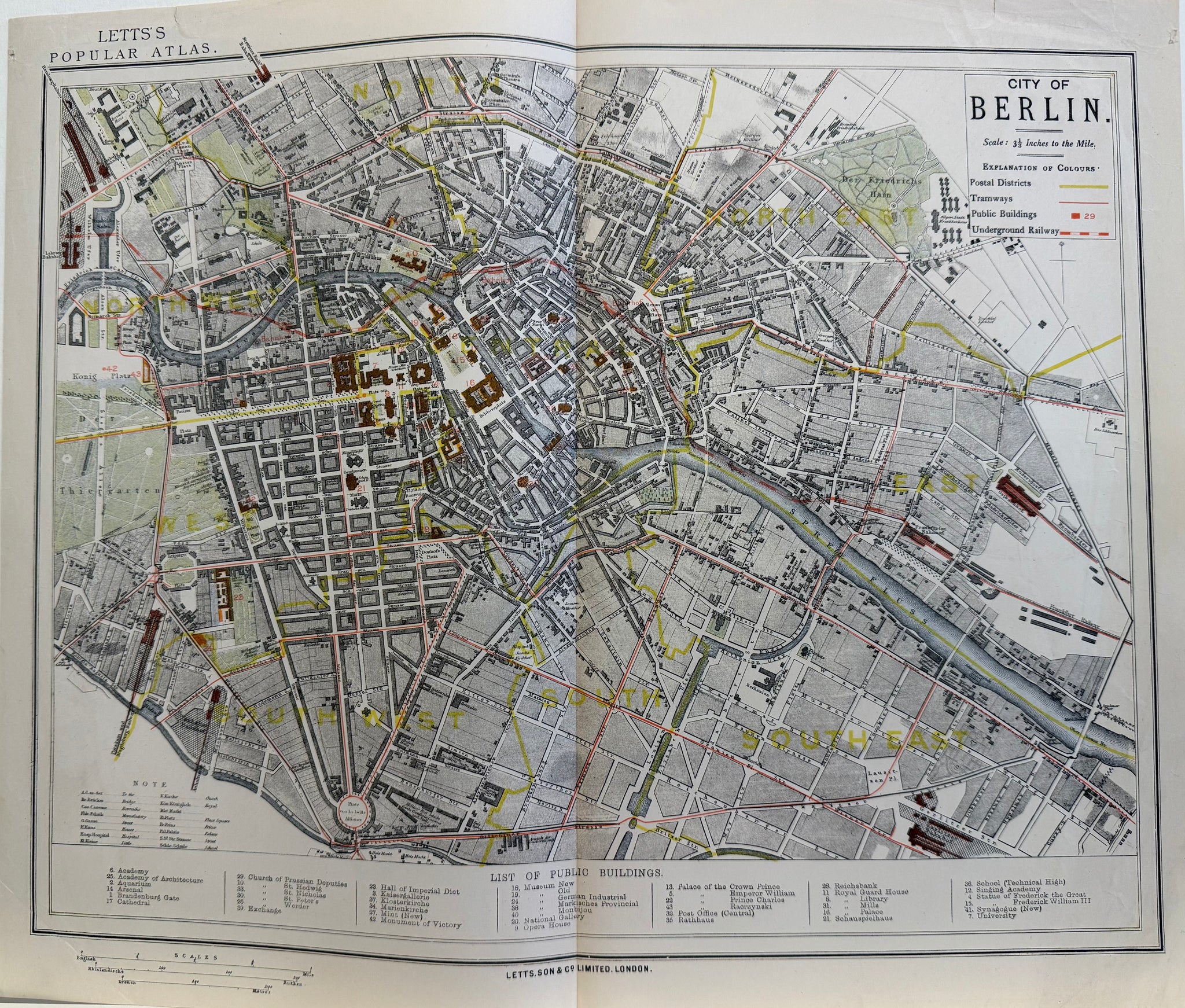 Berlin - Plan : Thomas Letts / Charles Letts - Original Lithografie - 1883