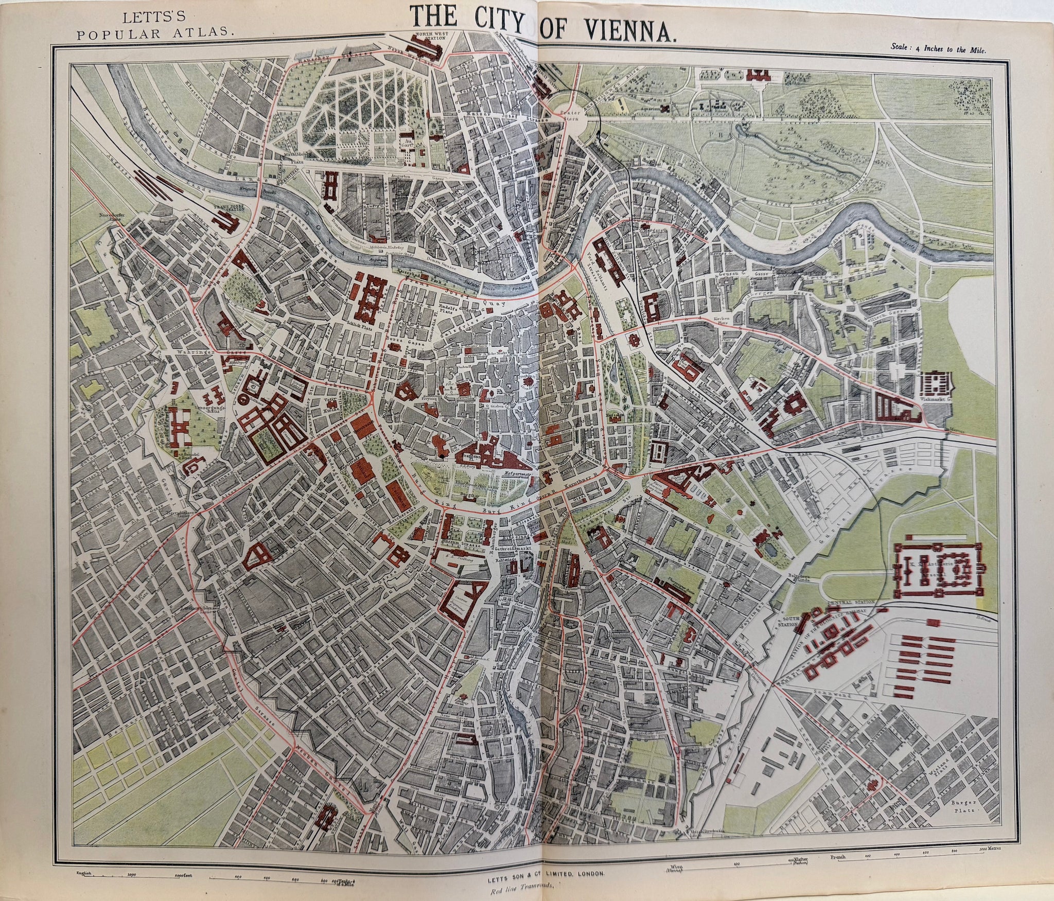 Wien - Plan : Thomas Letts / Charles Letts - Original Lithografie - 1883