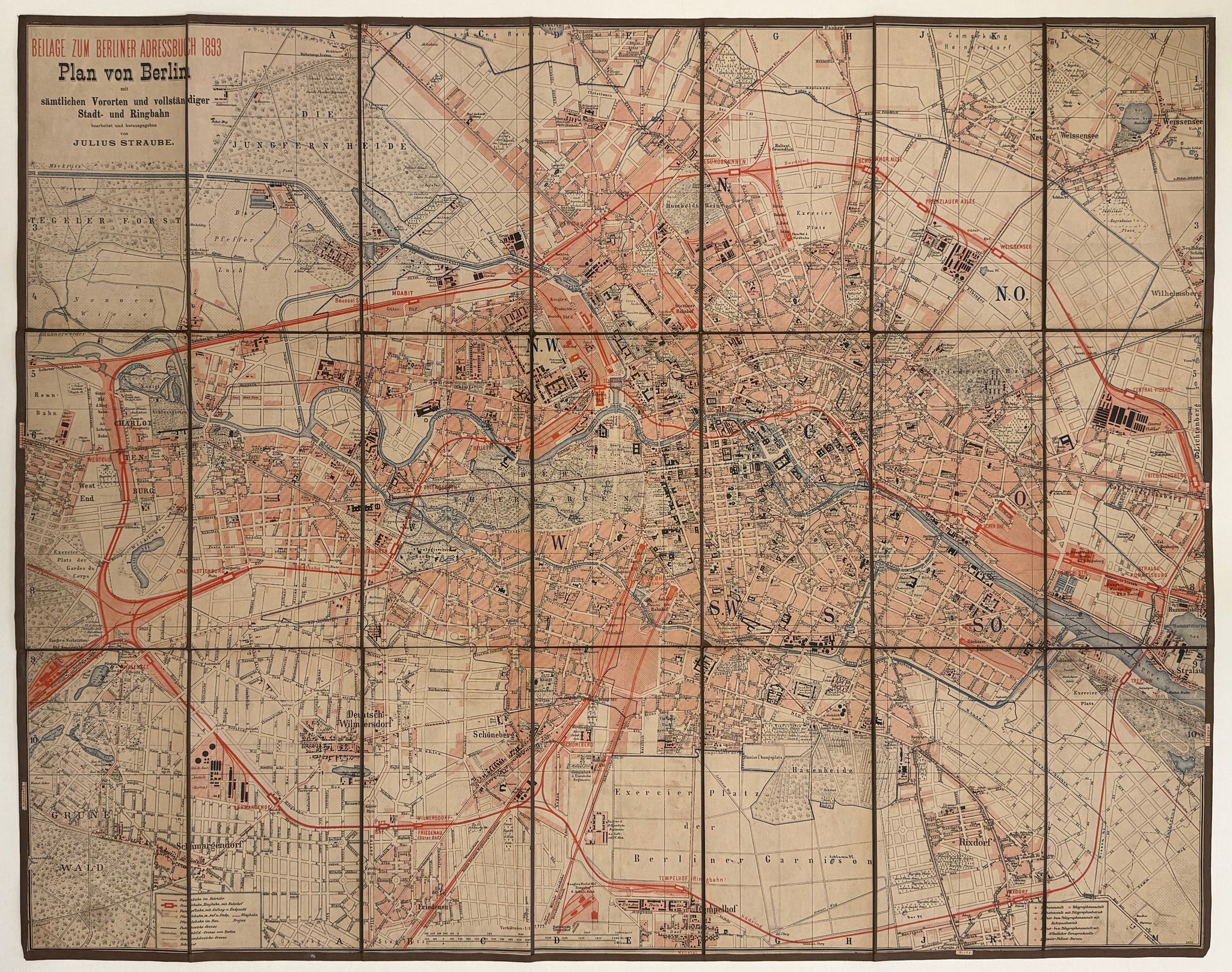 Berlin-Plan : Julius Straube - Original Lithografie - 1893