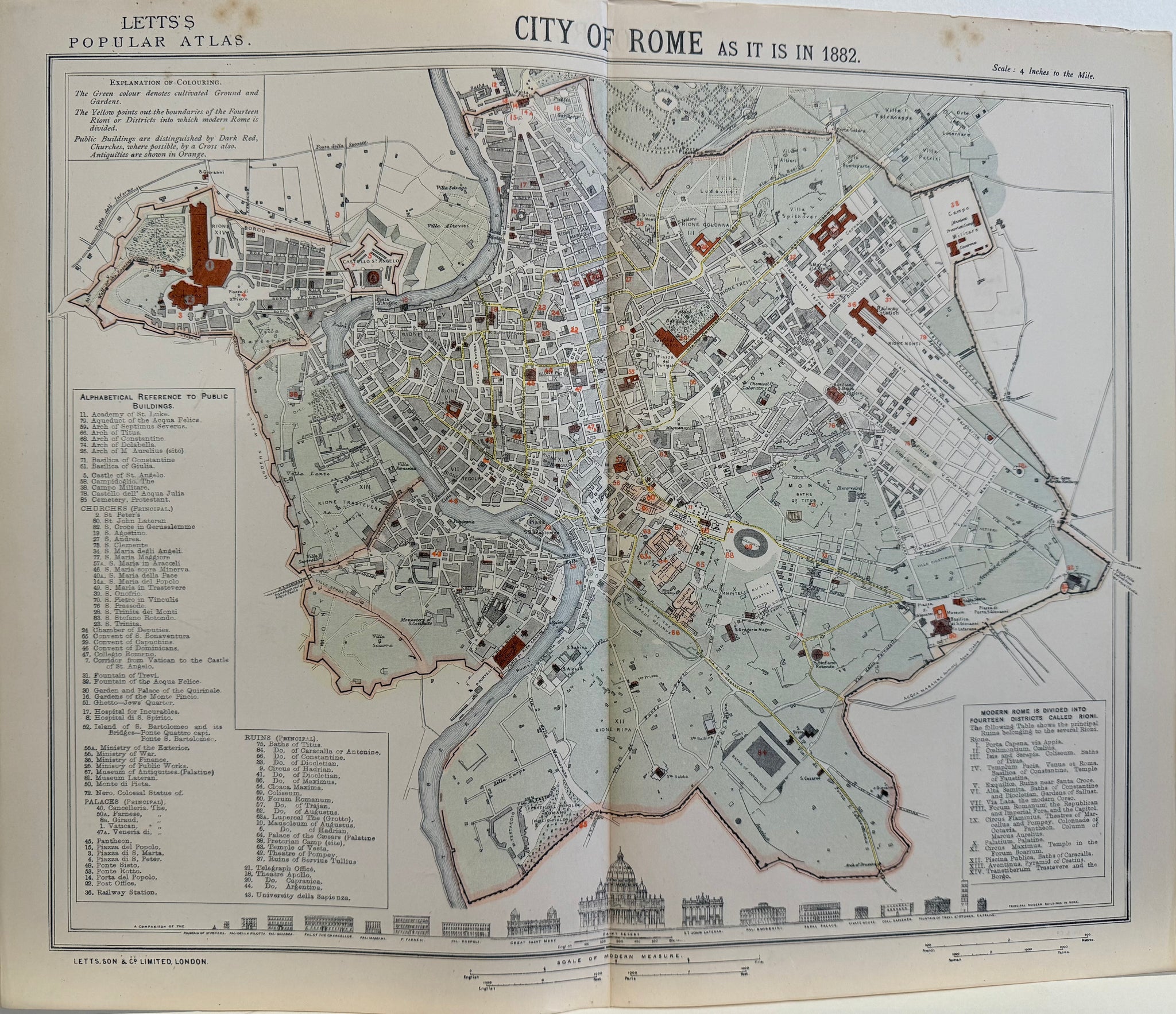 Rom - Plan : Thomas Letts / Charles Letts - Original Lithografie - 1883