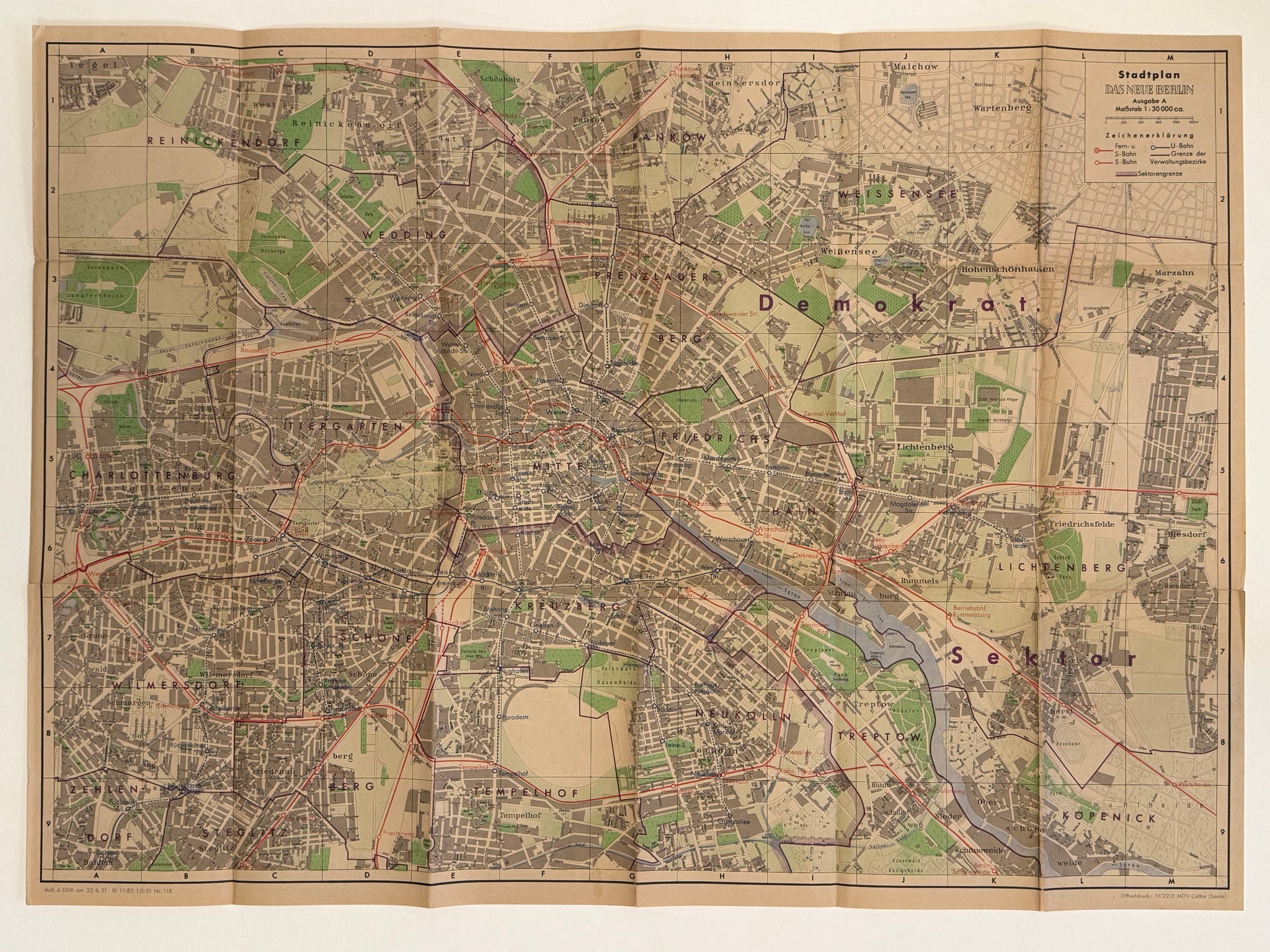Berlin - Plan : Das Neue Berlin Verlagsgesellschaft - Original Offsetdruck - 1951