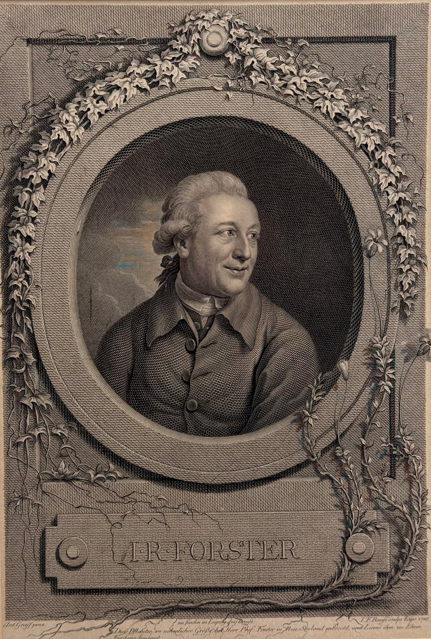 Johann Reinhold Forster : Johann Friedrich Bause / Anton Graff - Original Kupferstich - 1781