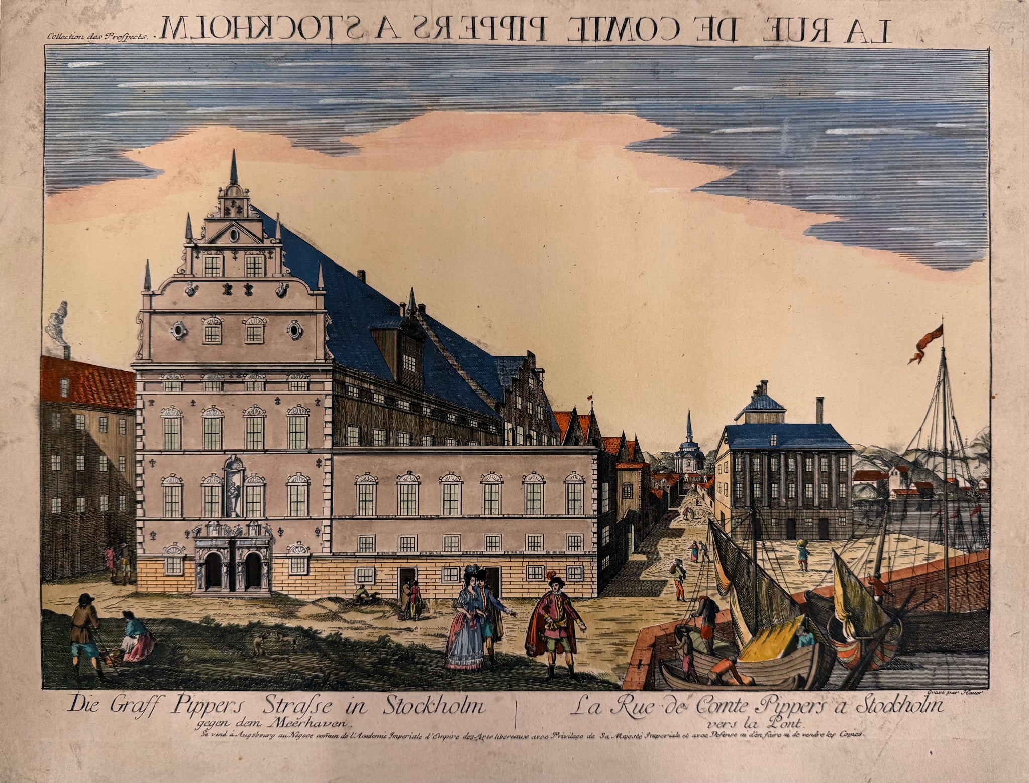 Stockholm - Graf Pippers Straße : Jean Hauer / Academie Imperiale - Guckkastenblatt - Original Kupferstich : 1770