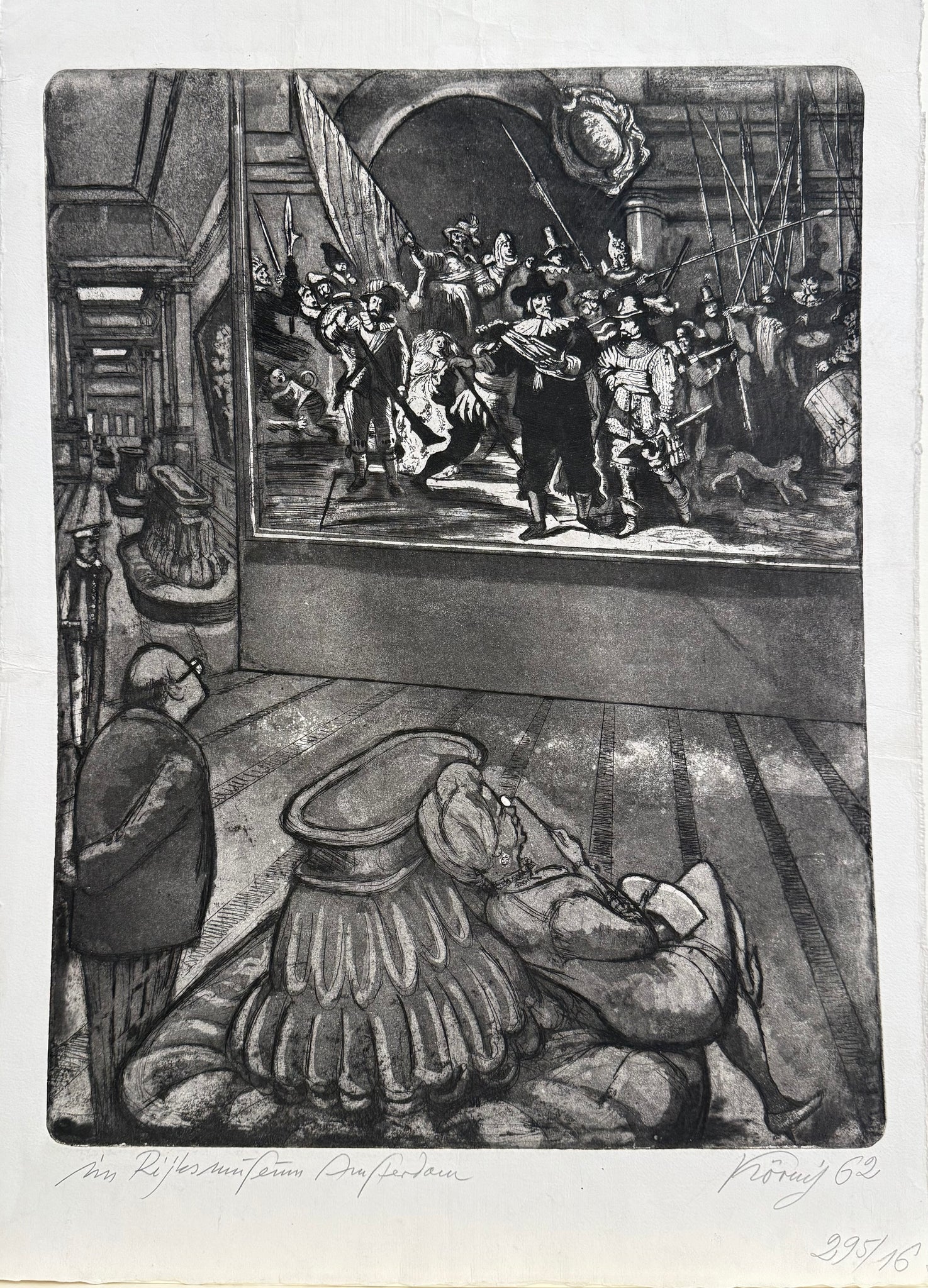 Hans Körnig : Im Rijksmuseum Amsterdam - Original Aquatintaradierung - 1962