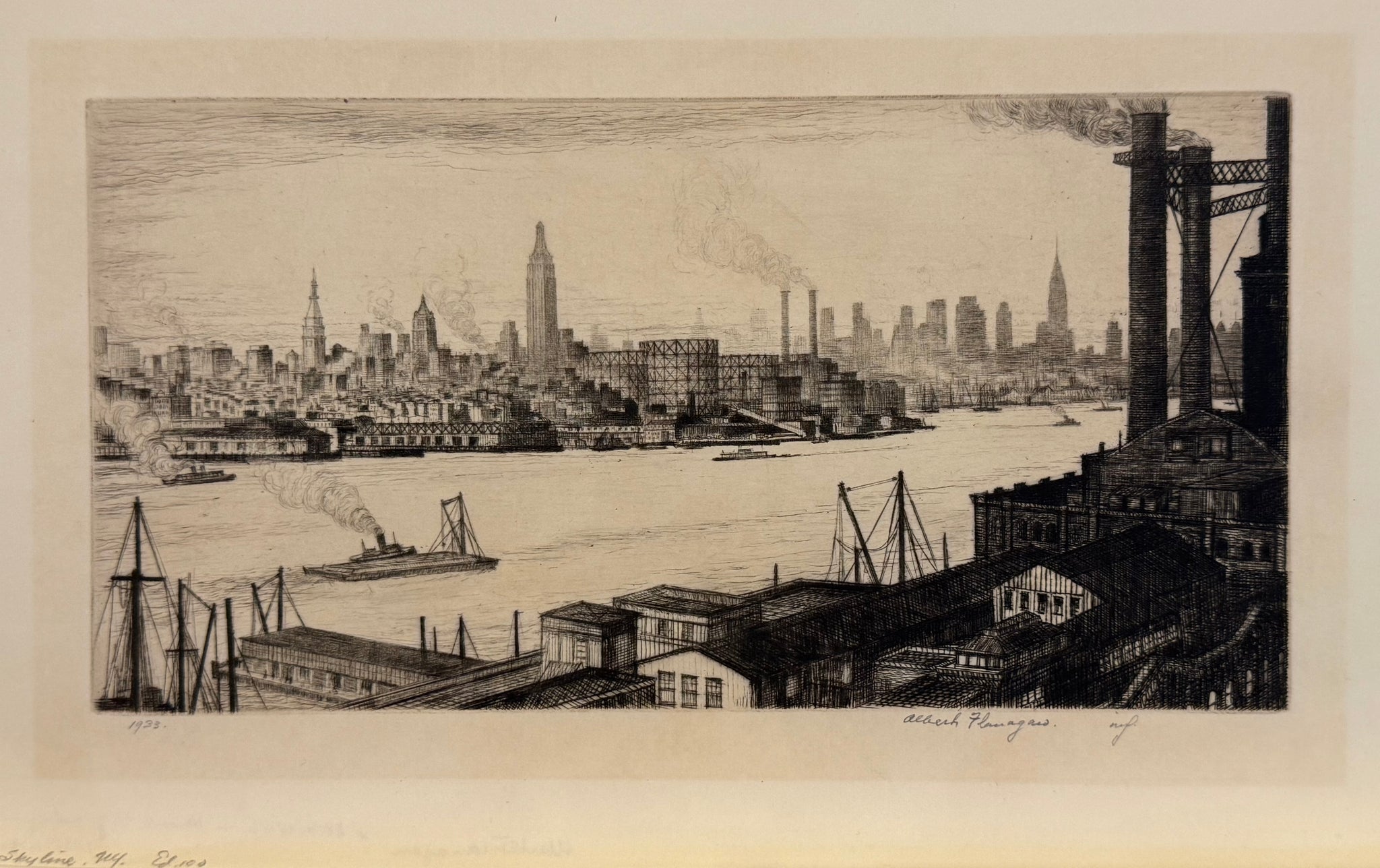 Albert Edward Flanagan : Skyline New York - Original Kaltnadelradierung - 1933