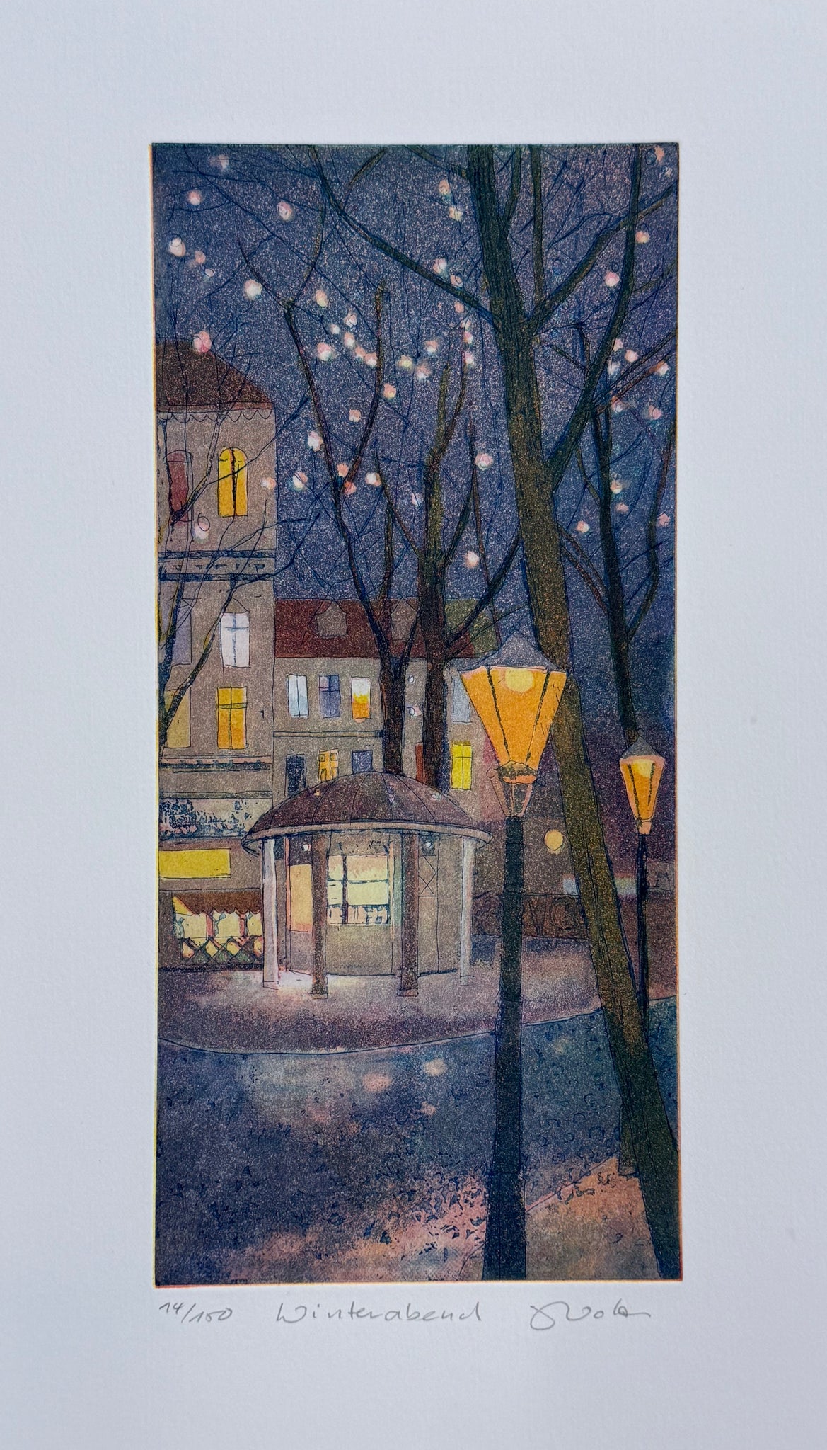 Winterabend : Jutta Votteler - Original Aquatintaradierung - 2024