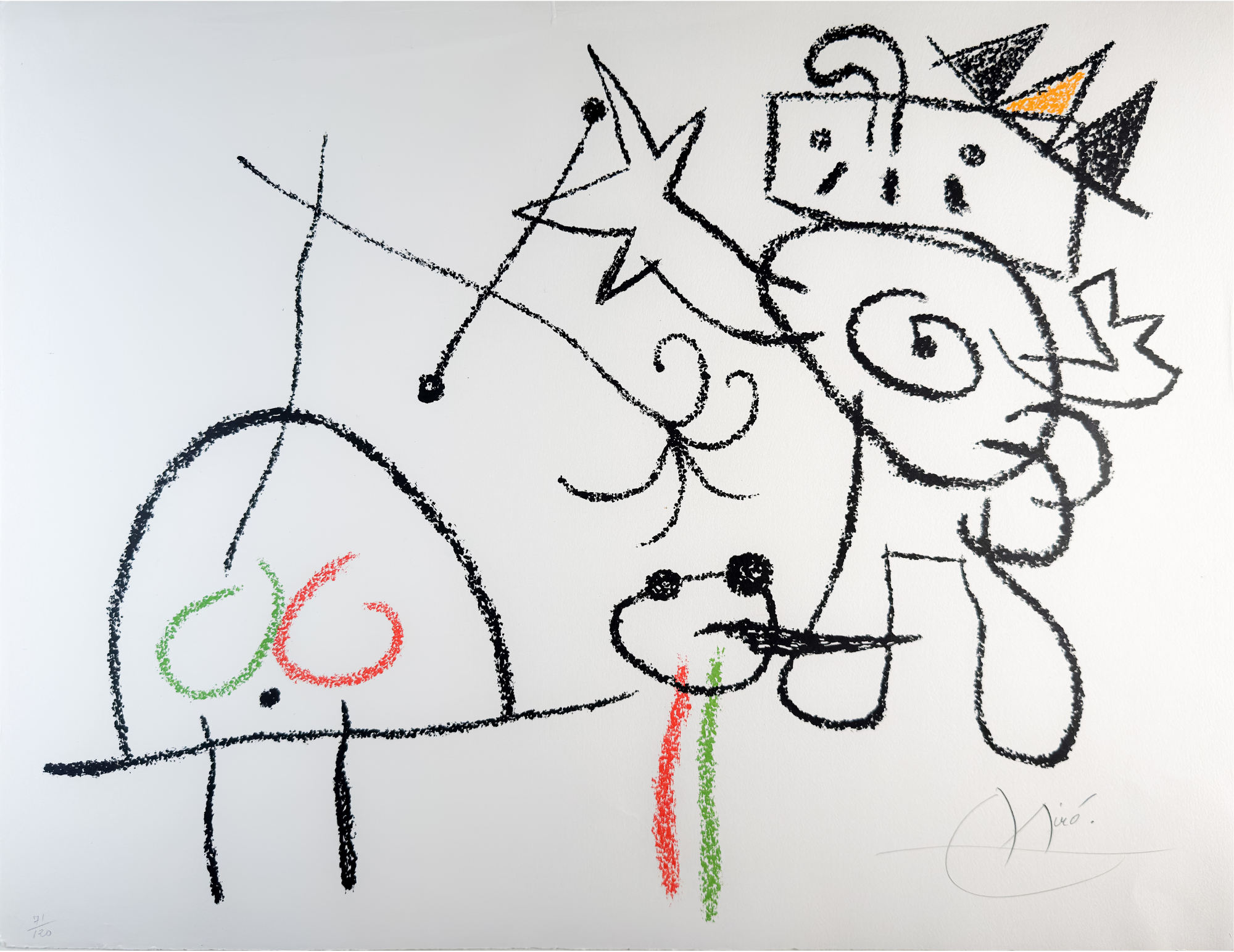 Joan Miró zählt zu den einflussreichsten Künstlern des 20. Jahrhunderts. Seine Kunst bewegt sich zwischen Surrealismus, Abstraktion und einer ganz eigenen, poetischen Bildwelt. Miró entwickelte eine Zeichen- und Farbsprache, die bewusst naiv erscheint und zugleich von großer geistiger Präzision ist. Zentrale Themen sind Freiheit, Spiel, Unterbewusstes und die Auflösung traditioneller Bildordnungen. Innerhalb der Kunstgeschichte nimmt Miró eine Schlüsselrolle ein, da er Malerei und Grafik von erzählerischen Zwängen befreite und neue Wege des bildnerischen Denkens eröffnete, deren Wirkung bis heute anhält.